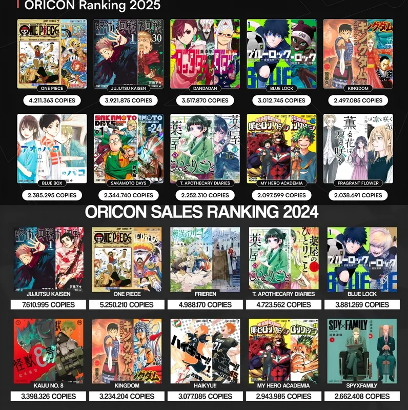 Скорее всего, ван пис не сойдёт с трона до самого своего конца, причина – физические версии всё меньше востребованы, японцы тоже не в пещерах живут и даже от таких традиций начинают отказываться.Даже в сравнении с 2024 годом, общие продажи сильно упали, не будет больших продаж, скорее всего, больше никогда.Крд с 82млн за год останется абсолютным рекордом, ван пис максимум взорвётся на финальном томе, но не думаю что дотянет до 100млн, если не будет флешмоба. Нужны новые виды подсчётов для электронных версий, я бы даже сказал необходимы.
