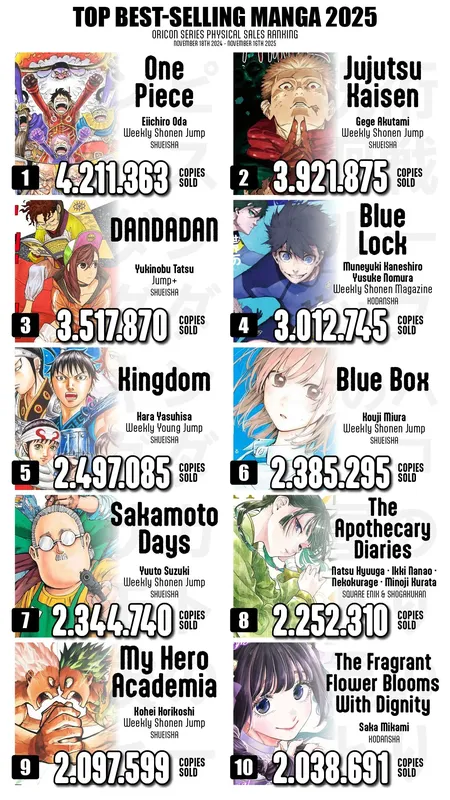 Для тех кто не знает, это всё купленное японцами в физическом формате и... Король вернулся, спустя 7 лет, Ван Пис снова самая продаваемая манга года.