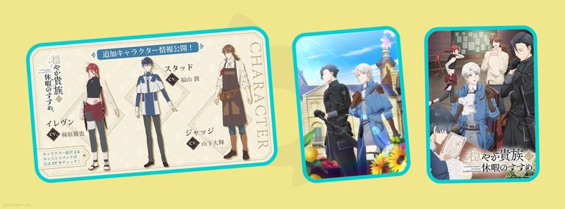 🍸 К аниме «Совет отпуска для спокойного аристократа» (Odayaka Kizoku no Kyūka no Susume) выкатили свежий визуал и объявили новых персонажей. Премьера ожидается в январе 2026 года.