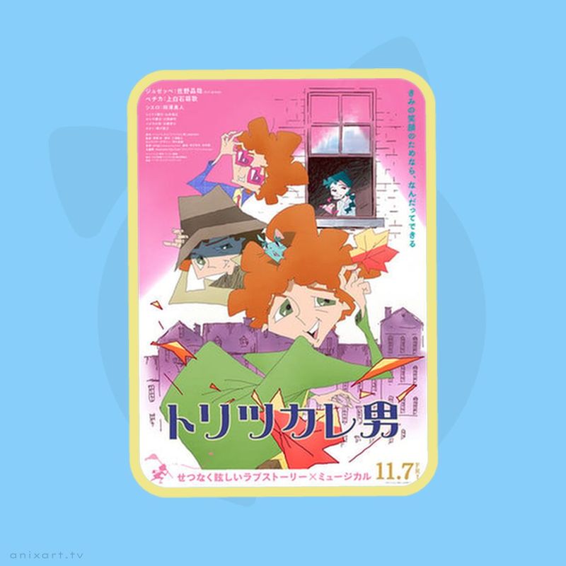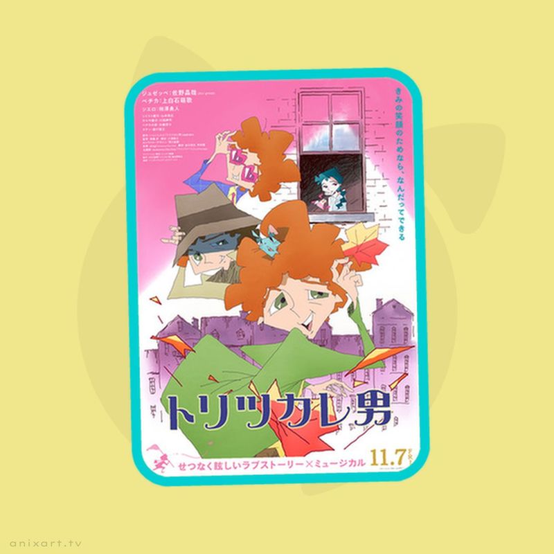 Главные герои поют "Fanfare ~Koi ni Ukarete~" — та самая тема, что написали Awesome City Club. По сюжету — это история Джузеппе, который вечно чем-то одержим, а теперь вот влюбился в продавщицу шариков по имени Печка. Помогать ему будет мышонок-спутник, а на пути — грусть и загадки самой Печки.