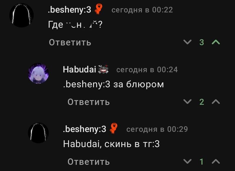Знаете тренд «читаю свои старые переписки»?Так вот, я решил почитать свои старые комментарии иии... это ужас. ᅠᅠ ᅠᅠ ᅠᅠСука, каким я дауном был. (Ну и сейчас не сильно изменилось как-то.) Ну короче, я такой испанский стыд испытал из-за каждого моего высера, я щас немного почищу самое неадекватное