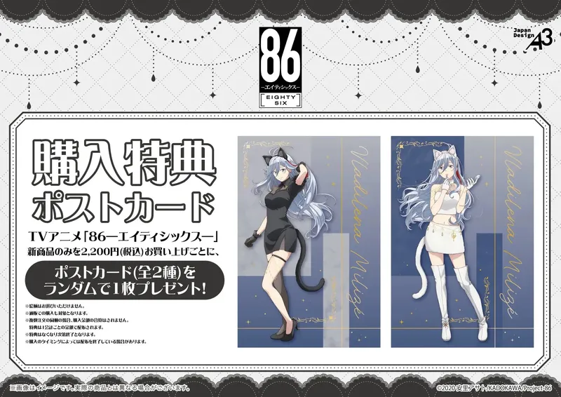 Автор: Asato Asato; Иллюстратор: Shirabii, I-IV; Первоисточник: лайт-новелла с 2017 года; Описание: Республика Сан-Магнолия. Долгое время эта страна подвергалась нападениям своего соседа, Империи, которая создала серию беспилотных военных машин под названием «Легион». В ответ на угрозу Республика успешно завершает разработку аналогичных военных технологий и отражает атаку врага, сумев обойтись без жертв. Но это... официальная версия. На самом деле жертвы были. За пределами 85 районов Республики. «Несуществующий 86-ой район». Именно там днём и ночью продолжались битвы, в которых участвовали юноши и девушки из отряда, известного как «Восемьдесят шесть» — они сражались в беспилотных машинах... Майор Владилена Миризе получает назначение стать куратором для элитной эскадрильи «Спирхед» на восточном фронте, в котором сражаются ветераны восемьдесят шестых, заслужившие себе имена.