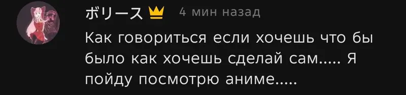 💬Моя история такова...Мой путь в аниме индустрии начался с аниме которое шло по телеканалам "Карусель" и "ТНТ", я досихпор очень люблю данный тайтл и имя ему [LBX]👑Первым моим осознанным аниме стал один из 3-х легендарных королей, а именно [Наруто]Смотрел я на всеми известном Jutsu, но довольно быстро понял, что он не так уж и хорош, и начал искать более интересные варианты, так я и наткнулся на Аник💜А теперь смотрю и сижу тута 😈, меня все устраивает и уходить пока не планирую🤠