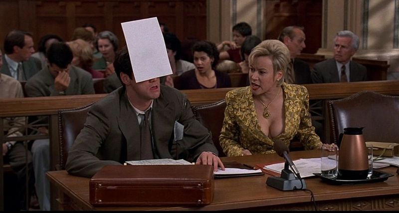 Поняв, что он наделал, Флэтчер кричит судье, чтобы тот отменил решение. Но это приводит к тому, что адвоката арестовывают за неуважение к суду.