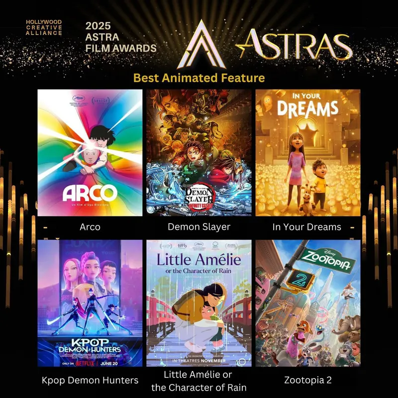 Охотники за наградойФильмы "Клинок, рассекающий демонов: Бесконечный замок" и "Кей-поп-охотницы на демонов" официально стали номинантами премии Astra Film Awards в категории "Лучший анимационный фильм".#Анонсы#Новости