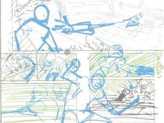 ⠀ШАГ 1: РАСКАДРОВКА🔻 На основе раскадровки намечается размещение персонажей и общее фоновое изображение. Чтобы лучше передать концепцию, могут быть также включены такие детали, как телосложение персонажей и параметры высоты.