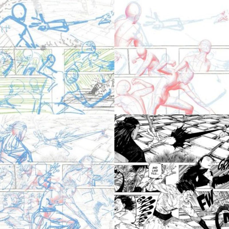 ✎ На выставке по аниме «Магическая битва» показали как именно Гэгэ рисует мангу🔻 На недавней выставке по аниме и манге Магическая битва показали, как именно Гэгэ рисовал мангу. На удивление он использовал 3D модели для этого. Поэтапный разбор вы можете увидеть ниже.