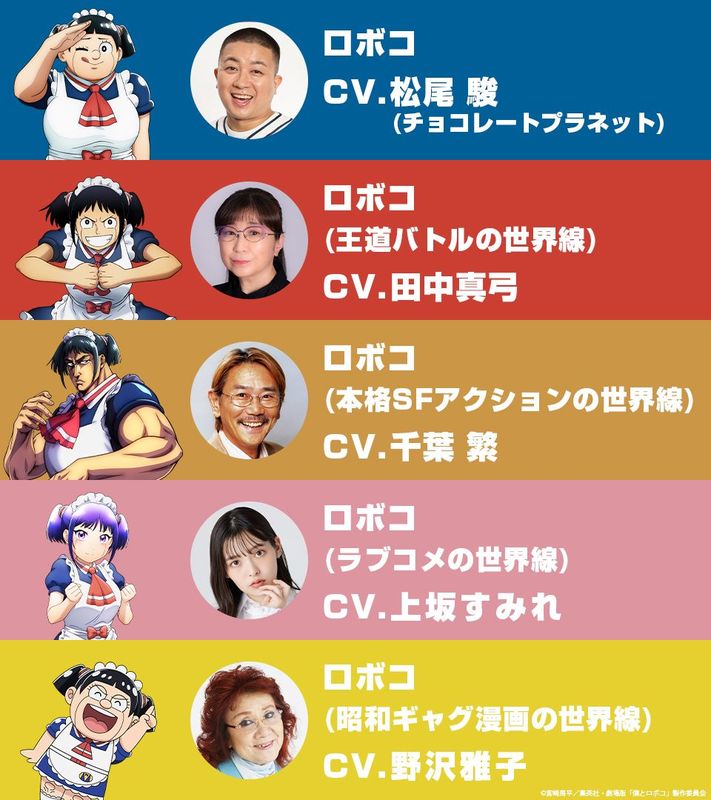 ✎ Аниме-фильм «Я и Робоко» раскрывает новые визуальные эффекты, актерский состав 🔻 Были раскрыты новый ключевой визуальный образ, список участников озвучки и визуальный образ персонажей для предстоящего аниме - фильма Я и Робоко. Фильм планируется выпустить в кинотеатрах Японии 18 апреля 2025 года.🔻 Недавно выпущенный визуальный ряд демонстрирует несколько мультивселенных версий титульных персонажей Робоко. Новые члены актерского состава озвучивания играющие варианты Робоко, включают:▪ Маюми Танака в роли Робоко (Классическая боевая мировая линия)▪ Сигеру Чиба в роли Робоко (классический научно-фантастический боевик)▪ Сумире Уэсака в роли Робоко (Романтическая комедия)▪ Масако Нодзава в роли Робоко (Манга с приколами эпохи Сёва)