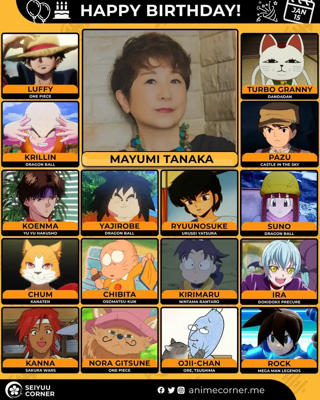 🥳 Сегодня день рождения у сэйю Маюми Танака🔻 Ей исполнилось 71 год! 🎉#ДеньРождения #15января #МаюмиТанака #сэйю60expand_more17expand_less