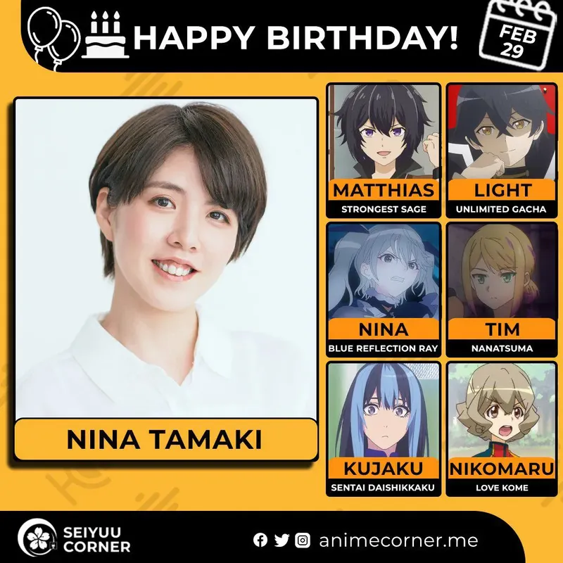 🥳 Сегодня день рождения у сэйю Нина Тамаки🔻 Ей исполнилось 30 лет! 🎉#ДеньРождения #28февраля #НинаТамаки #сэйю50expand_more19expand_less