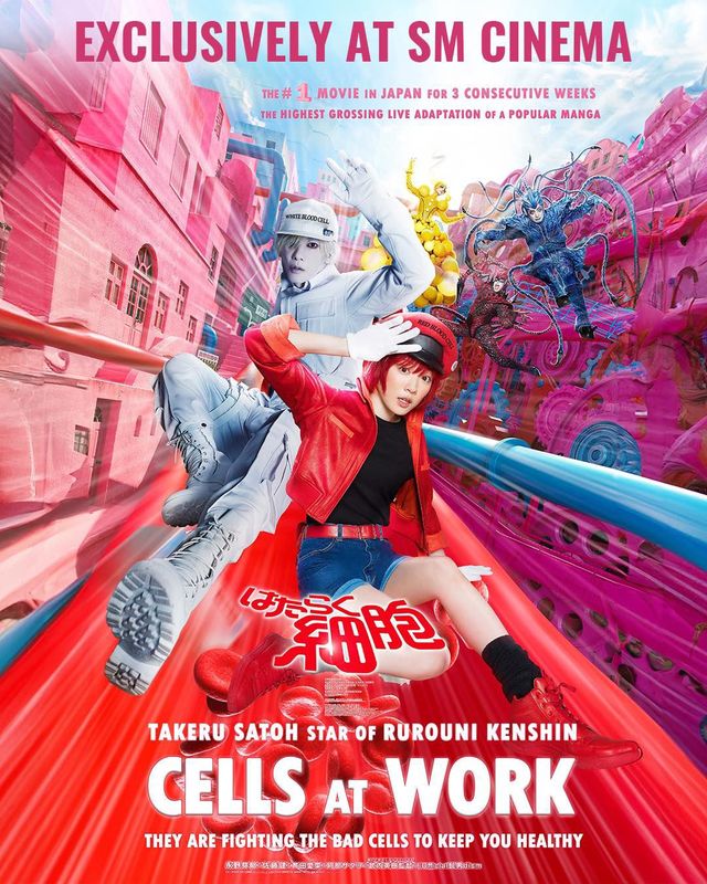 Премьера фильма «Клетки за работой» с живими актерами🔻 Как ранее сообщала компания Pioneer Films, премьера фильма «Клетки за работой» состоится на Филиппинах 29 января 2025 года. Мэй Нагано играет главную роль Красной кровяной клетки, а Такеру Сато — Белую кровяную клетку.🔻 Фильм «Клетки за работой» с живыми актерами, который длится 2 часа 24 минуты, будет выпущен эксклюзивно SM Cinema по всей стране. Режиссером фильма является Хидеки Такеучи, а сценарий написан Юити Токунагой. Трейлер и постер к фильму вы можете увидеть ниже.Трейлер фильма ☞ Нажми на меня