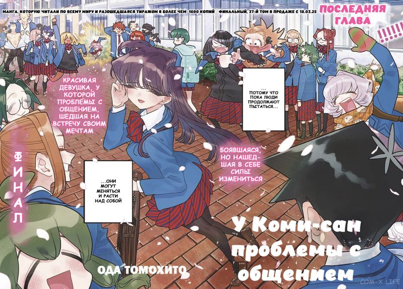 ✎ Манга «У Коми проблемы с общением» заканчивается через 3 главы🔻 Манга У Коми проблемы с общением официально закончится через 3 главы, согласно официальному сайту Weekly Shonen Sunday. Ранее было подтверждено, что манга вступает в свою «финальную часть». Новая глава выйдет 22 января.
