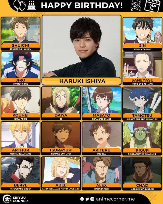 🥳 Сегодня день рождения у сэйю Харуки Исия🔻 Ему исполнилось 34 года! 🎉#ДеньРождения #14января #ХарукиИсия #сэйю30expand_more12expand_less