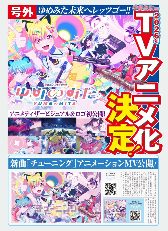 ✎ Анонсировано аниме «BanG Dream! Yume∞Mita»🔻 Виртуальная женская группа Mugendai Mewtype, также известная как Yumemita, выйдет в 2026 году в виде аниме-сериала под названием «BanG Dream! Yume∞Mita». Над анимацией работает студия Nichika Line, а также был представлен визуальный тизер.