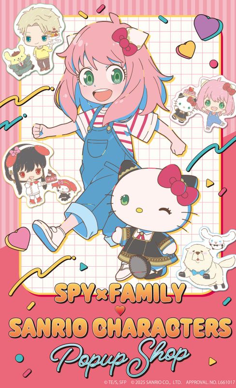 ✎ Новая колобарация «Семья шпиона х Hello Kitty»🔻 Аккаунт X (ранее Twitter) аниме «Семья шпиона» опубликовал визуальное изображение недавно анонсированного совместного магазина Семьи Шпиона и персонажей Sanrio. Эта специально нарисованная иллюстрация, естественно, будут использоваться для товаров магазина pop-up.🔻 Вы можете взглянуть на предметы, созданные в сотрудничестве с персонажами Семьи шпиона и Sanrio, здесь. Они включают акриловые подставки, полотенца для рук и зеркала для банок.