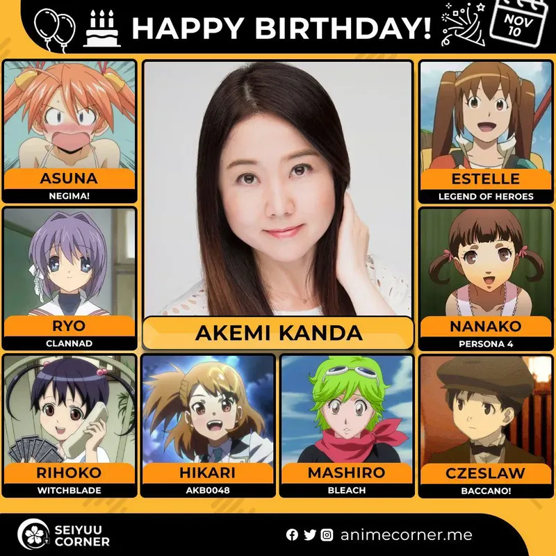 🥳 Сегодня день рождения у сэйю Акеми Канда 🔻 Ей исполнилось 47 лет! 🎉#ДеньРождения #10ноября #АкемиКанда #сэйю20expand_more14expand_less