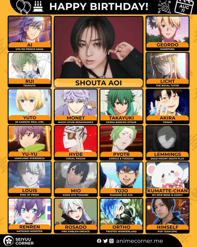 🥳 Сегодня день рождения у сэйю Шота Аой🔻 Ему исполнилось 38 лет! 🎉#ДеньРождения #11августа #ШотаАой #сэйю30expand_more11expand_less