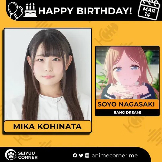 🥳 Сегодня день рождения у сэйю Мика Кохината🔻 Ей исполнилось 26 лет! 🎉#ДеньРождения #14марта #МикакоХината #сэйю40expand_more14expand_less