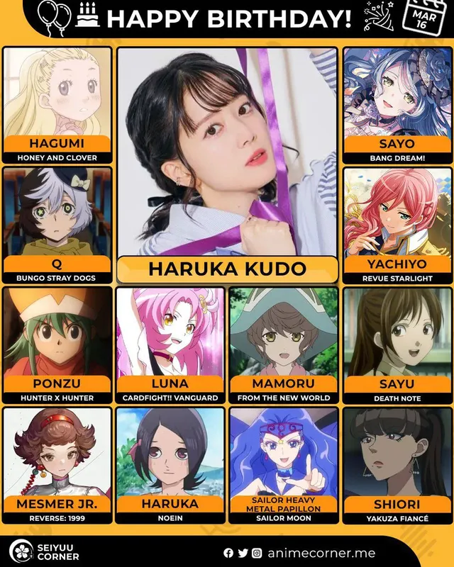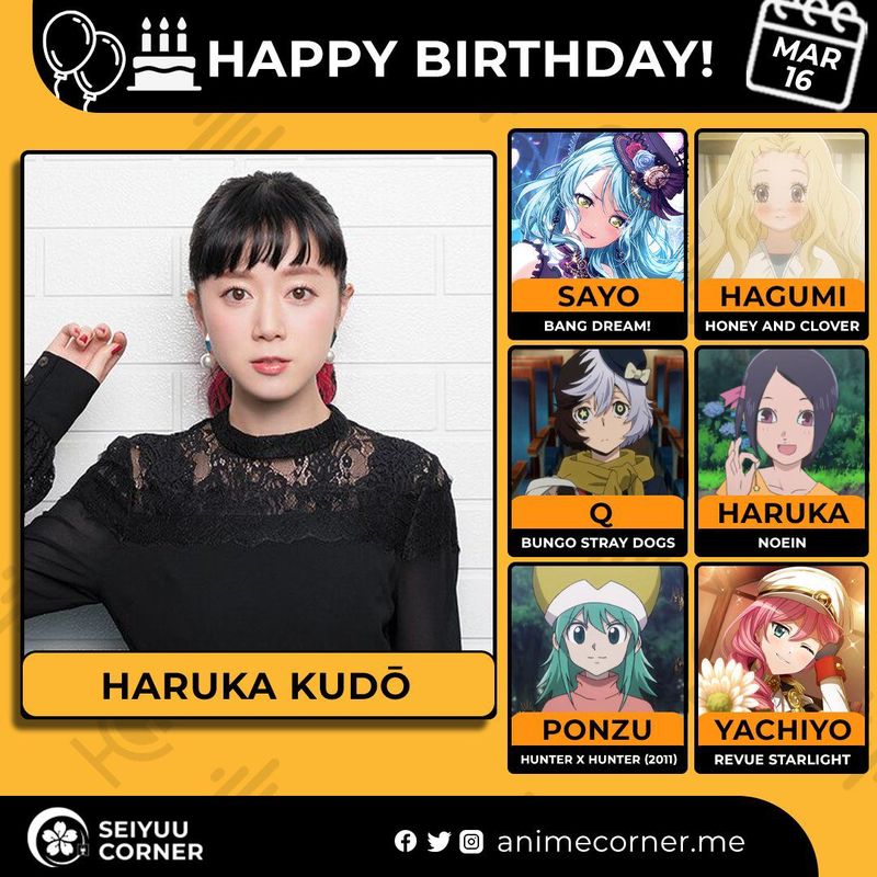 🥳 Сегодня день рождения у сэйю Харука Кудо🔻 Ей исполнилось 37 лет! 🎉#ДеньРождения #16марта #ХарукаКудо #сэйю20expand_more12expand_less