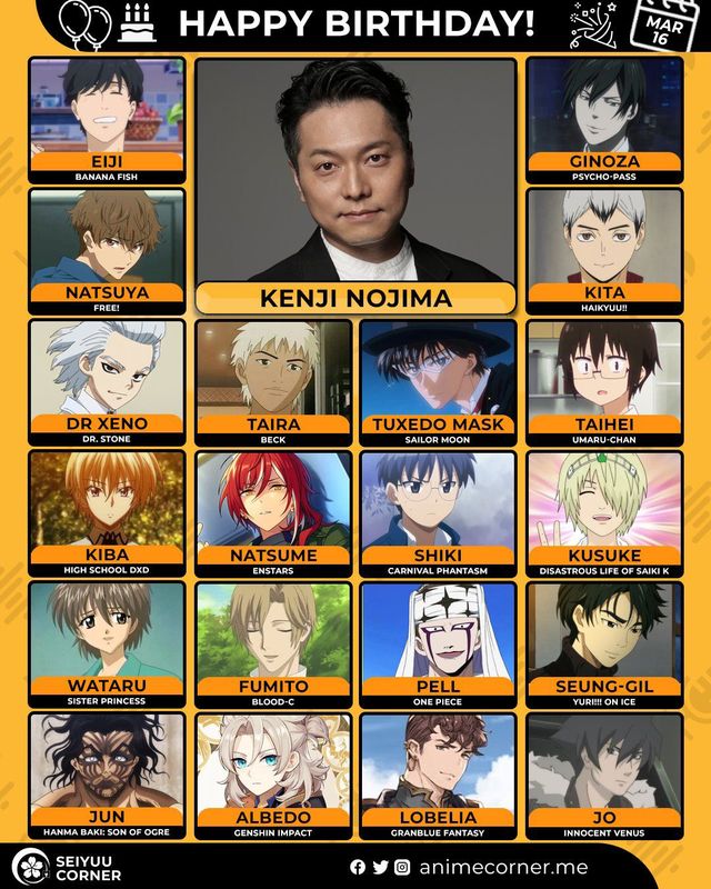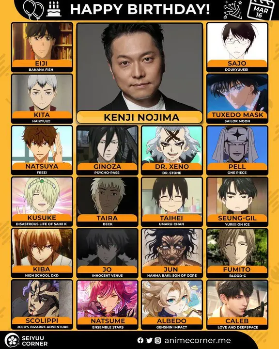 🥳 Сегодня день рождения у сэйю Кэндзи Кодзима🔻 Ему исполнилось 49 лет! 🎉#деньрождения #16марта #КэндзиНодзима #сэйю20expand_more7expand_less