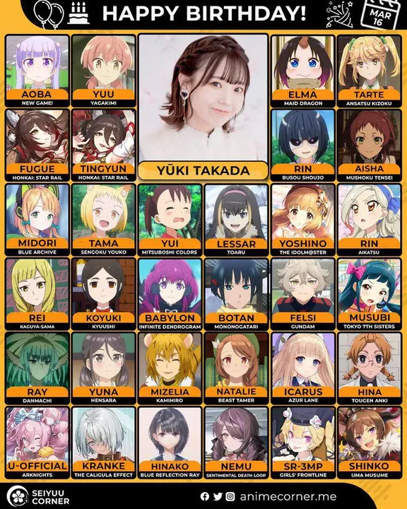 🥳 Сегодня день рождения у сэйю Юки Такада🔻 Ей исполнилось 32 года! 🎉#деньРождения #16марта #ЮкиТакада #сэйю10expand_more7expand_less