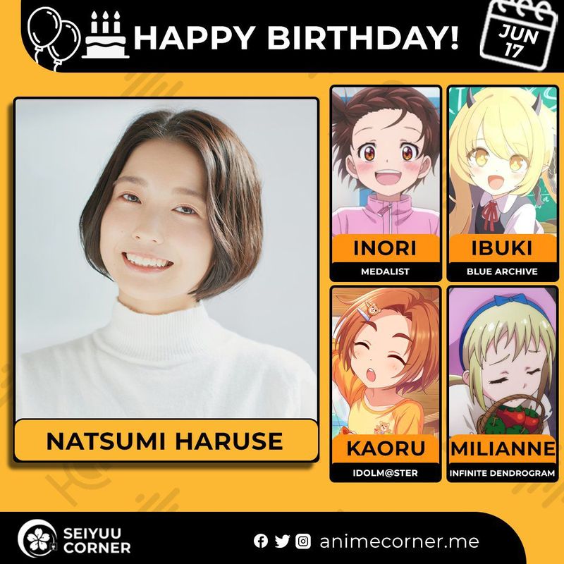 🥳 Сегодня день рождения у сэйю Нацуми Харусе🔻 Ей исполнилось 31 года! 🎉#Деньрождения #17июня #НацумиХарусе #сэйю20expand_more12expand_less