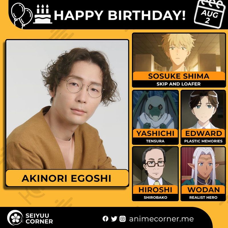 🥳 Сегодня день рождения у сэйю Акинори Эгоши🔻 Ему исполнилось 37 лет! 🎉#ДеньРождения #2августа #АкинориЭгоши #сэйю30expand_more11expand_less