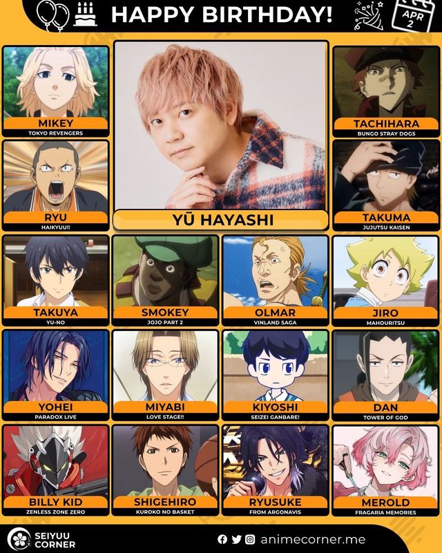 🥳 Сегодня день рождения у сэйю Ю Хаяси🔻 Ему исполнилось 42 года! 🎉#Деньрождения #2апреля #ЮХаяси #сэйю00expand_more12expand_less