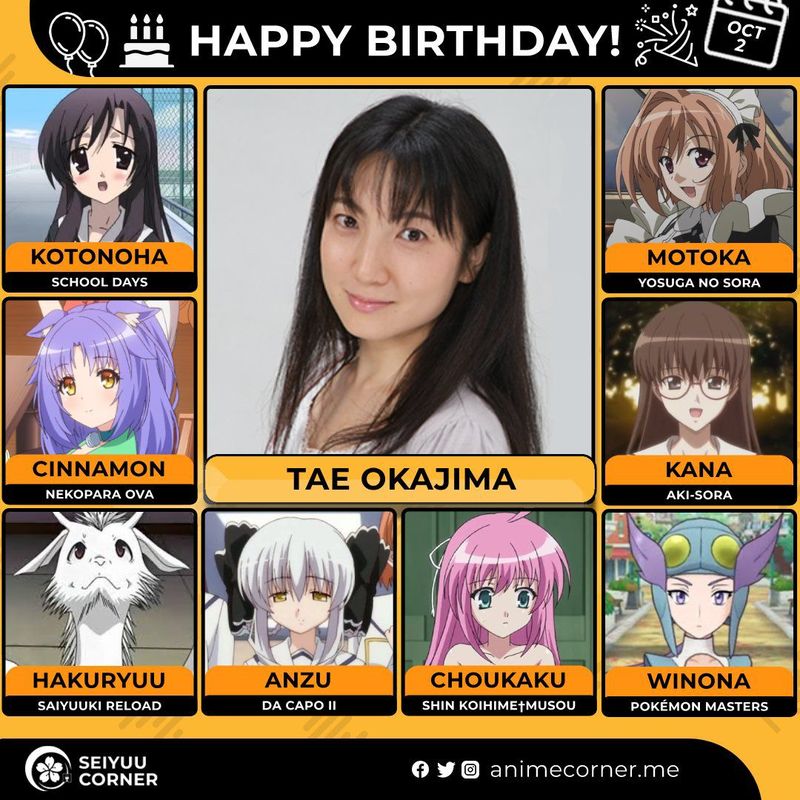🥳 Сегодня день рождения у сэйю Тэ Окадзима🔻 Ее возраст неизвестен.#ДеньРождения #2октября #ТэОкадзима #сэйю20expand_more16expand_less