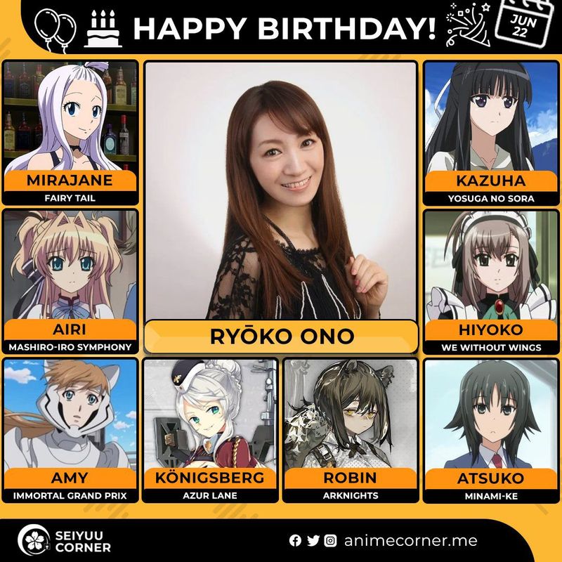 🥳 Сегодня день рождения у сэйю Рёко Оно🔻 Ей исполнилось 48 лет! 🎉#ДеньРождения #22июня #РёкоОно #сэйю80expand_more14expand_less