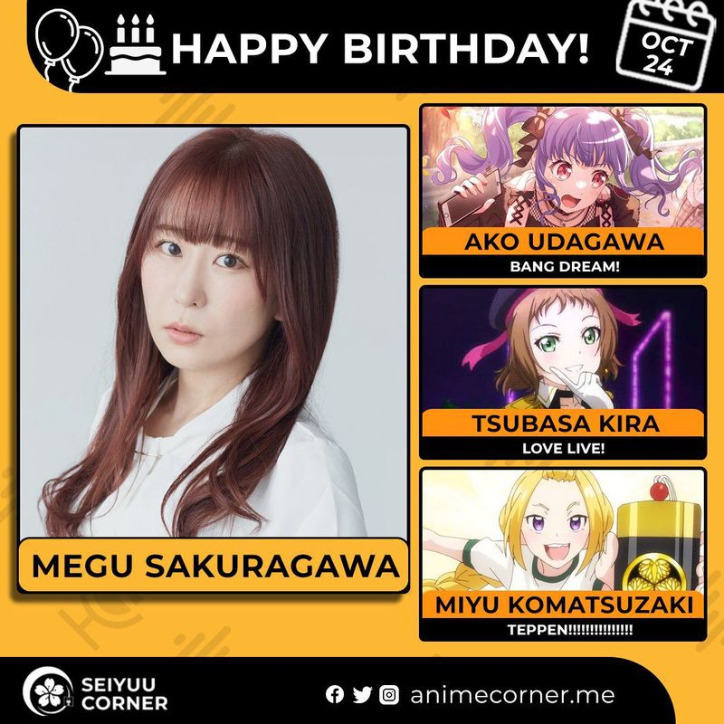 🥳 Сегодня день рождения у сэйю Мэгу Сакурагава 🔻 Ей исполнилось 37 лет! 🎉#ДеньРождения #24октября #МэгуСакурагава #сэйю20expand_more17expand_less