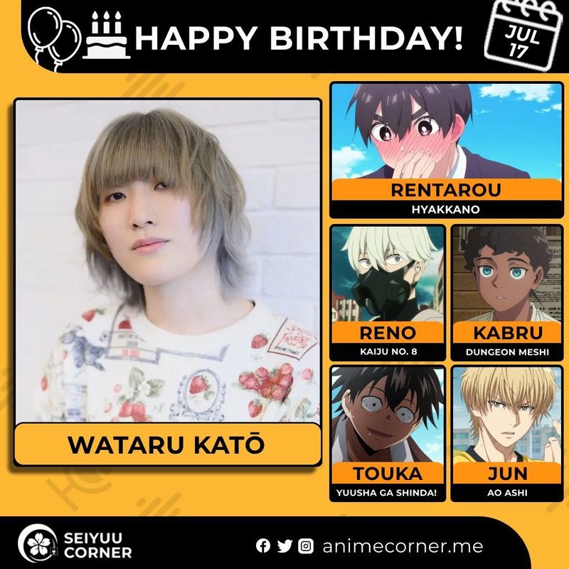 🥳 Сегодня день рождения у сэйю Ватару Като🔻 Ему исполнилось 28 лет! 🎉#Деньрождения #17июля #ВатаруКато #сэйю30expand_more17expand_less