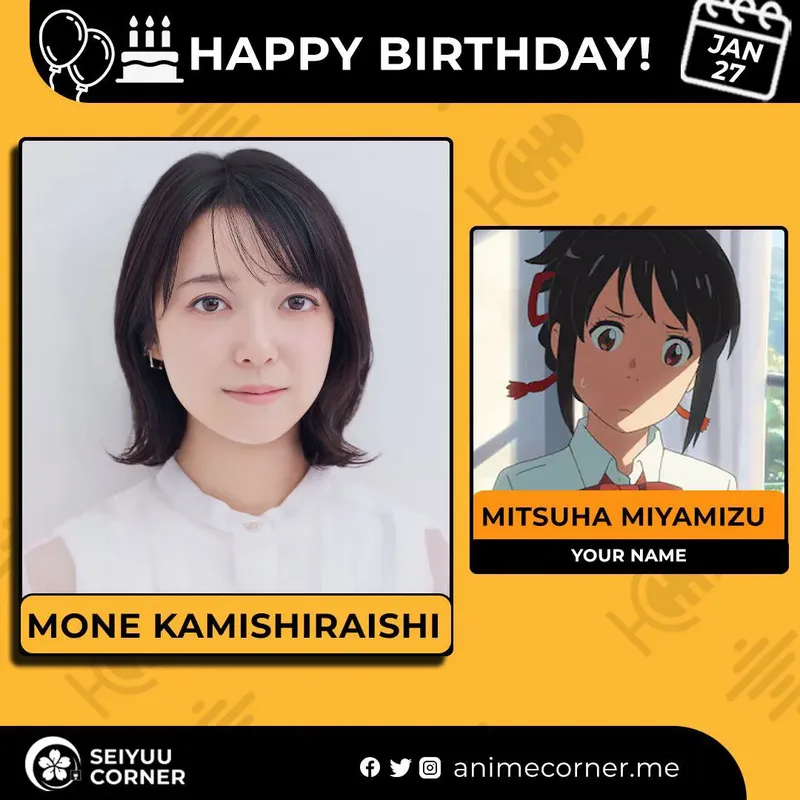 🥳 Сегодня день рождения у сэйю Моне Камишираиши🔻 Ей исполнилось 28 лет! 🎉#ДеньРождения #27января #МонеКамишираиши #сэйю20expand_more21expand_less