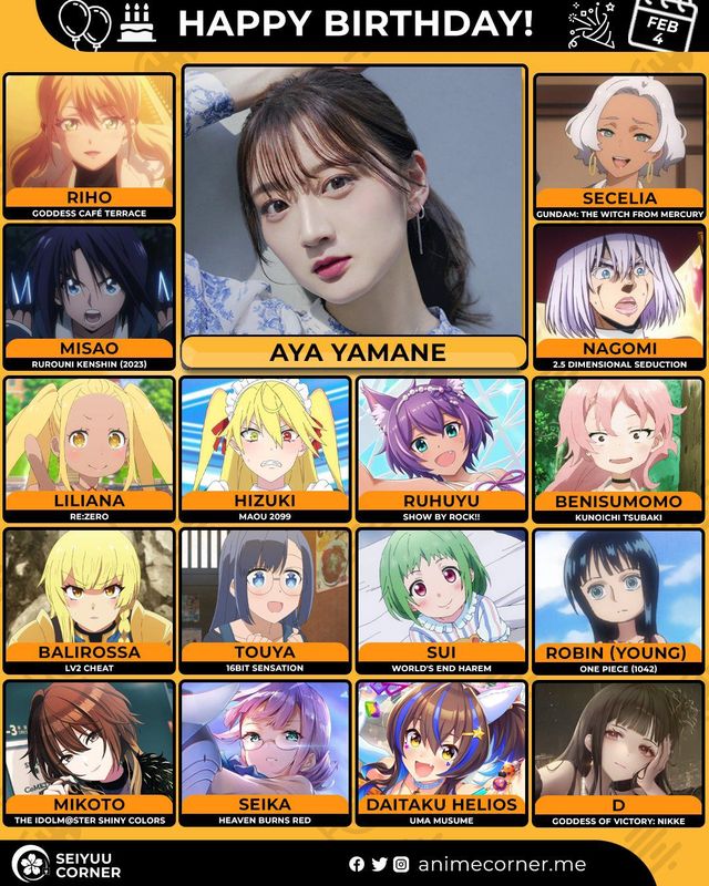 🥳 Сегодня день рождения у сэйю Ая Ямане🔻 Ей исполнилось 28 лет! 🎉#ДеньРождения #4февраля #АяЯмане00expand_more7expand_less