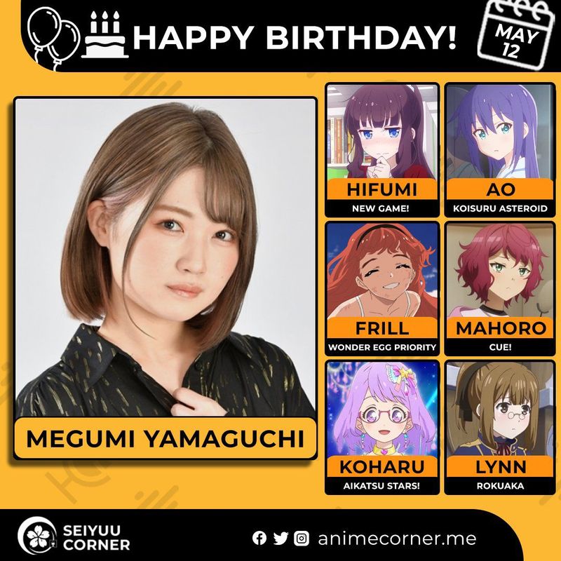 🥳 Сегодня день рождения у сэйю Мегуми Ямагучи🔻 Ей исполнилось 28 лет! 🎉#ДеньРождения #12мая #МегумиЯмагучи #сэйю20expand_more8expand_less