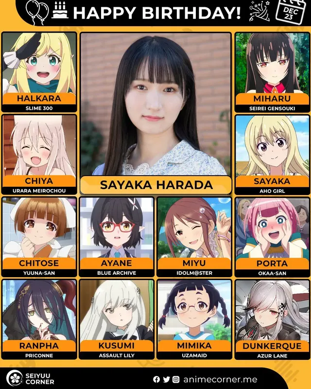 🥳 Сегодня день рождения у сэйю Саяка Харада🔻 Ей исполнилось 28 лет! 🎉#ДеньРождения #23декабря #СаякаХарада #сэйю30expand_more17expand_less