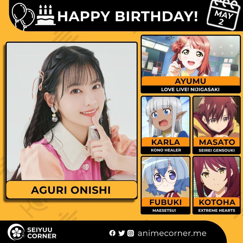 🥳 Сегодня день рождения у сэйю Агури Ониси🔻 Ей исполнилось 28 лет! 🎉#ДеньРождения #2мая #АгуриОниси #Сэйю20expand_more11expand_less