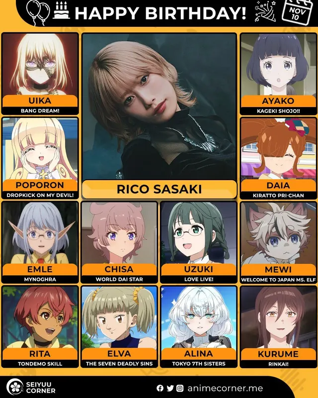 🥳 Сегодня день рождения у сэйю Рико Сасаки🔻 Ей исполнилось 28 лет! 🎉#ДеньРождения #10ноября #РикоСасаки #сэйю20expand_more14expand_less