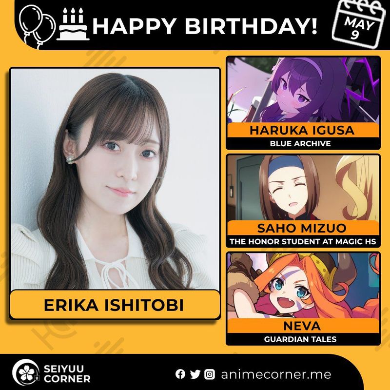 🥳 Сегодня день рождения у сэйю Эрика Иситоби🔻 Ей исполнилось 28 лет! 🎉#Деньрождения #9мая #ЭрикаИситоби #сэйю10expand_more11expand_less