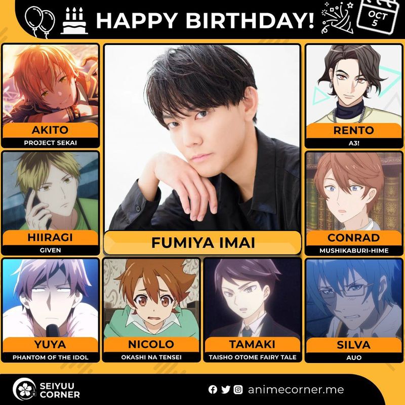 🥳 Сегодня день рождения у сэйю Фумия Имаи🔻 Ему исполнилось 28 лет! 🎉#ДеньРождения #5октября #ФумияИмаи #сэйю20expand_more18expand_less