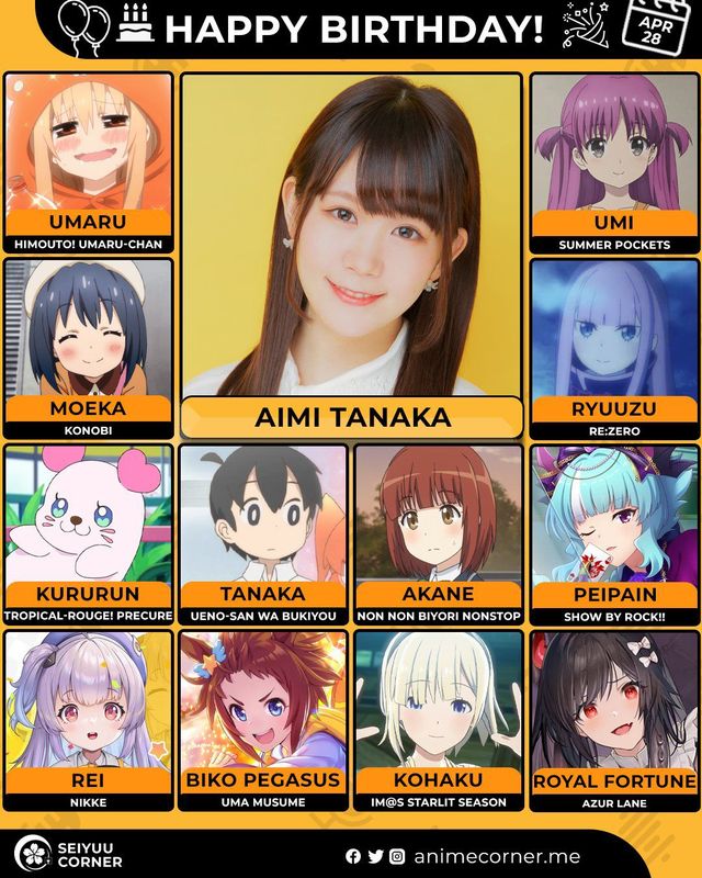 🥳 Сегодня день рождения у сэйю Айми Танака🔻 Ей исполнилось 33 года! 🎉#ДеньРождения #28апреля #АймиТанака #сэйю10expand_more14expand_less