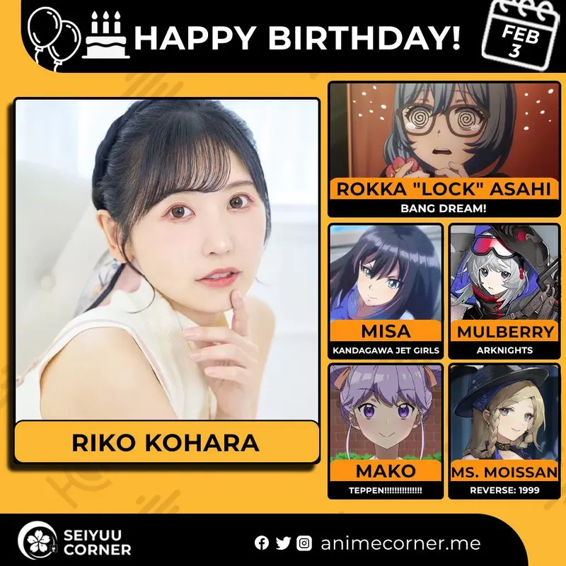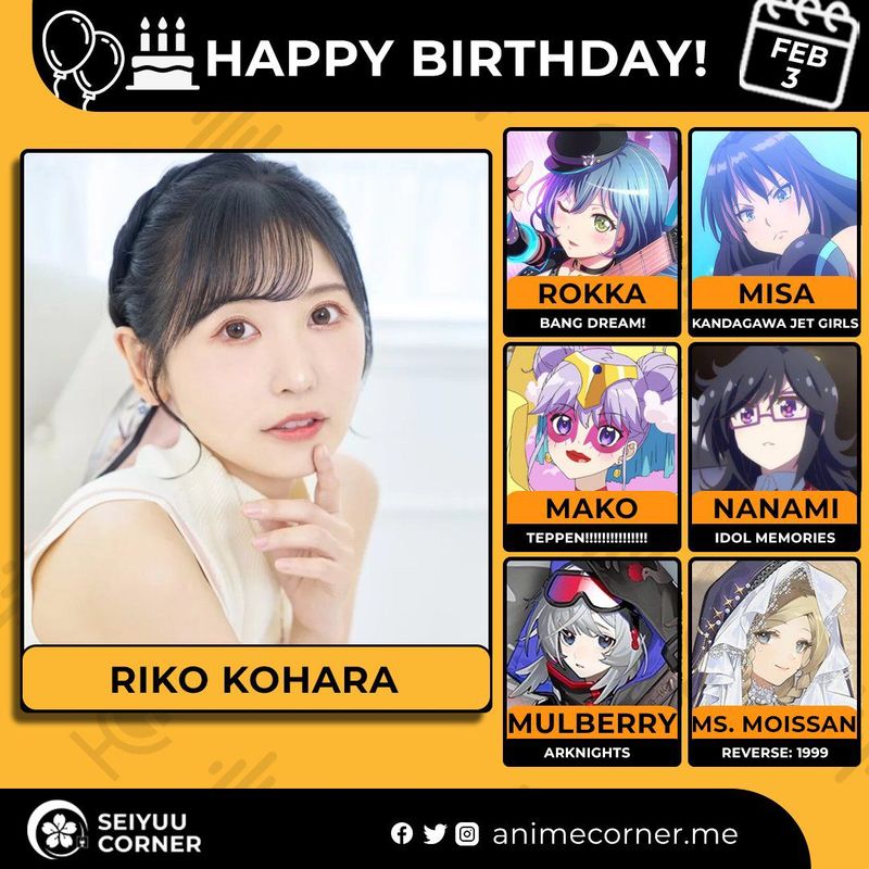 🥳 Сегодня день рождения у сэйю Рико Кохара🔻 Ей исполнилось 36 лет! 🎉#ДеньРождения #3февраля #РикоКохара #сэйю20expand_more17expand_less