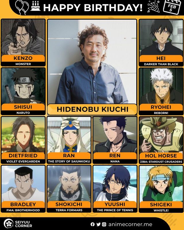 🥳 Сегодня день рождения у сэйю Хидэнобу Киути 🔻 Ему исполнилось 57 лет! 🎉#ДеньРождения #5февраля #ХидэнобуКиути #сэйю50expand_more17expand_less