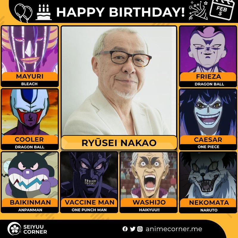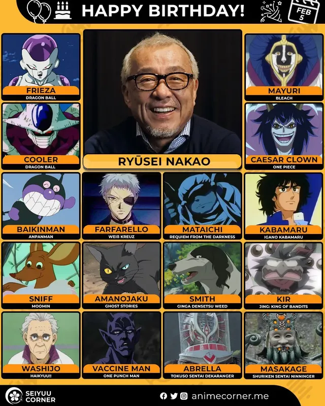 🥳 Сегодня день рождения у сэйю Рюсэй Накао🔻 Ему исполнилось 74 года! 🎉#деньрождения #5февраля #РюсэйНакао30expand_more9expand_less