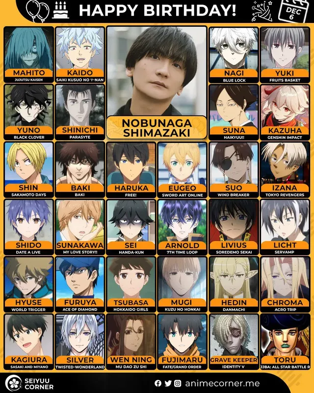 🥳 Сегодня день рождения у сэйю Нобунага Шимазаки🔻 Ему исполнилось 37 лет! 🎉#ДеньРождения #6декабря #НобунагаШимазаки #сэйю21expand_more19expand_less