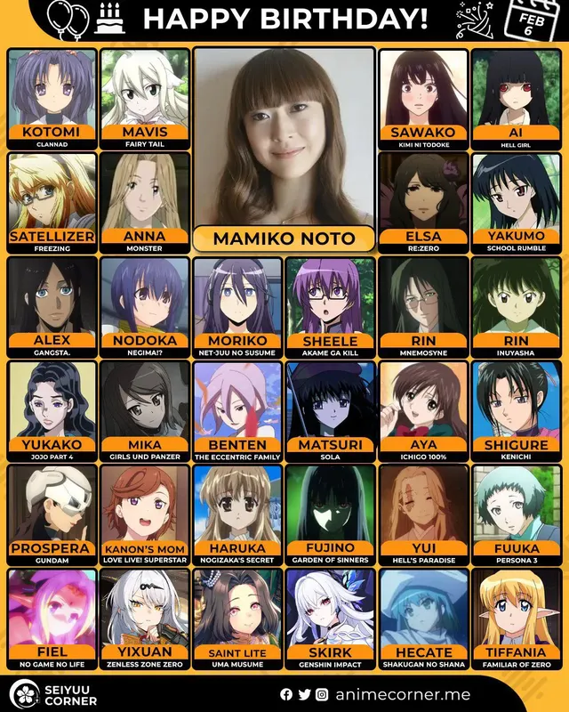 🥳 Сегодня день рождения у сэйю Мамико Ното🔻 Ей исполнилось 45 лет! 🎉#Деньрождения #6февраля #МамикоНото10expand_more8expand_less