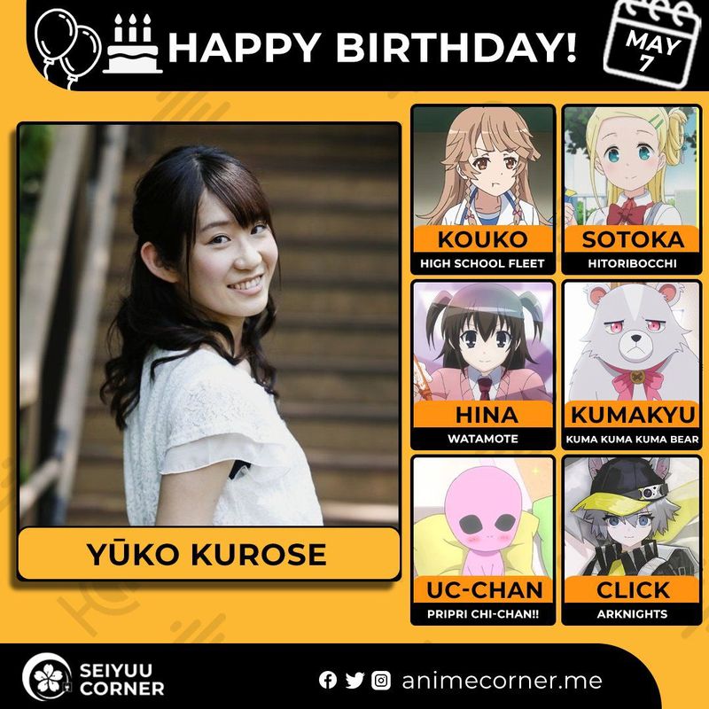 🥳 Сегодня день рождения Юко Куросэ🔻 Ее возраст неизвестен.#ДеньРождения #7мая #ЮкоКуросэ #сэйю20expand_more12expand_less
