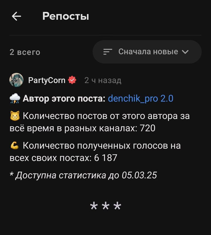📌 Пост со статистикой больше не обслуживается!