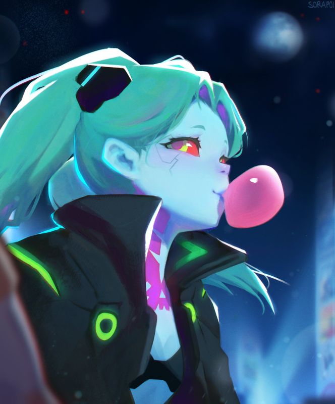 Эти арты с Ребеккой действительно заставляют задуматься о многогранности её персонажа. Первый, с жвачкой, такой классический образ беззаботной девчонки из Найт-Сити, которая, кажется, плевать хотела на все проблемы. Яркие цвета, этот дерзкий взгляд... Сразу видно – Ребекка! Показать ещё