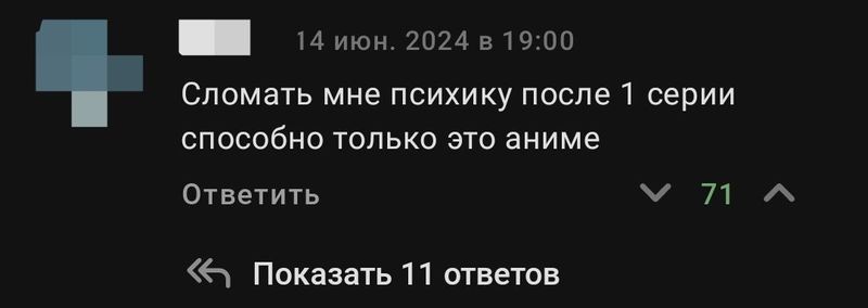 🎬 Ладно, дубль 2. В прошлый раз похоже подсказка была слишком очевидной и тайтл смогли отгадать с первой попытки. Так что я это пофиксил (наверное...).Просьба давать ответ с пометкой "спойлер" .📚 В чем суть? Я взял несколько комментарий из под рандомного аниме, но ± популярного. Ваше задача угадать по этим комментариям название тайтла, под которым они были написаны.Комментарий No1